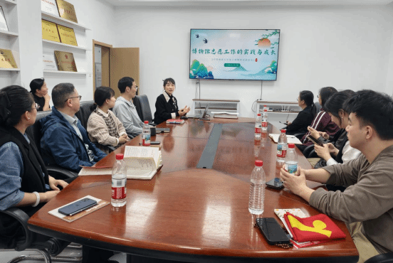 宝石学生第三党支部宣传委员方婷以《博物馆志愿工作的实践与成长》为题,以自己在中国地质博物馆、中国藏学研究中心西藏文化博物馆、盘龙城遗址博物馆及逸夫博物馆的志愿服务工作经历为案例,结合央视全国志愿服务宣传报道,和师生党员深入学习习近平总书记关于志愿服务工作的重要指示,明确青年党员在科普服务中的使命担当。