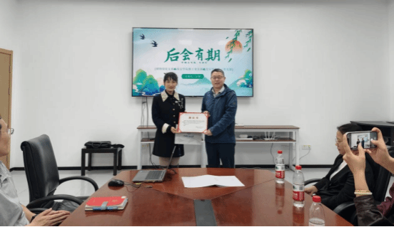 逸夫博物馆副馆长彭磊对方婷在逸夫博物馆的志愿服务期间的讲解和培训工作给予充分肯定和认可,为方婷颁发“优秀科普导师”荣誉证书和文创纪念品。