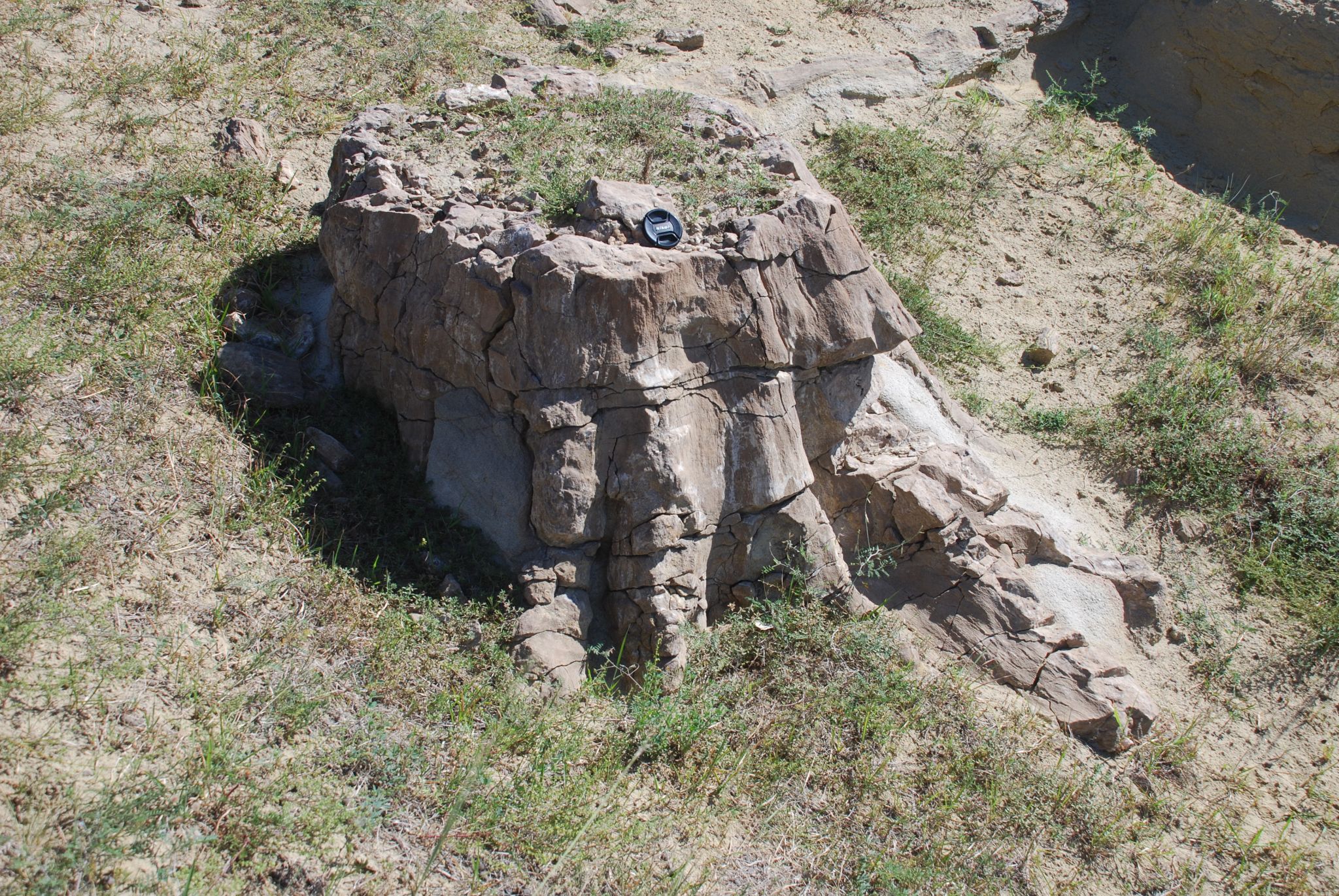 裸露在野外的钙化木根化石