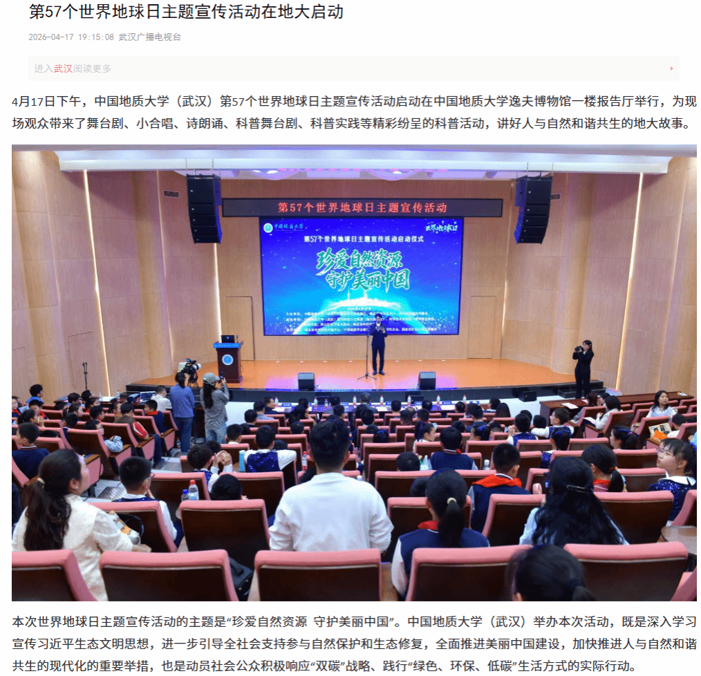 【武汉广播电视台客户端】第57个世界地球日主题宣传活动在地大启动