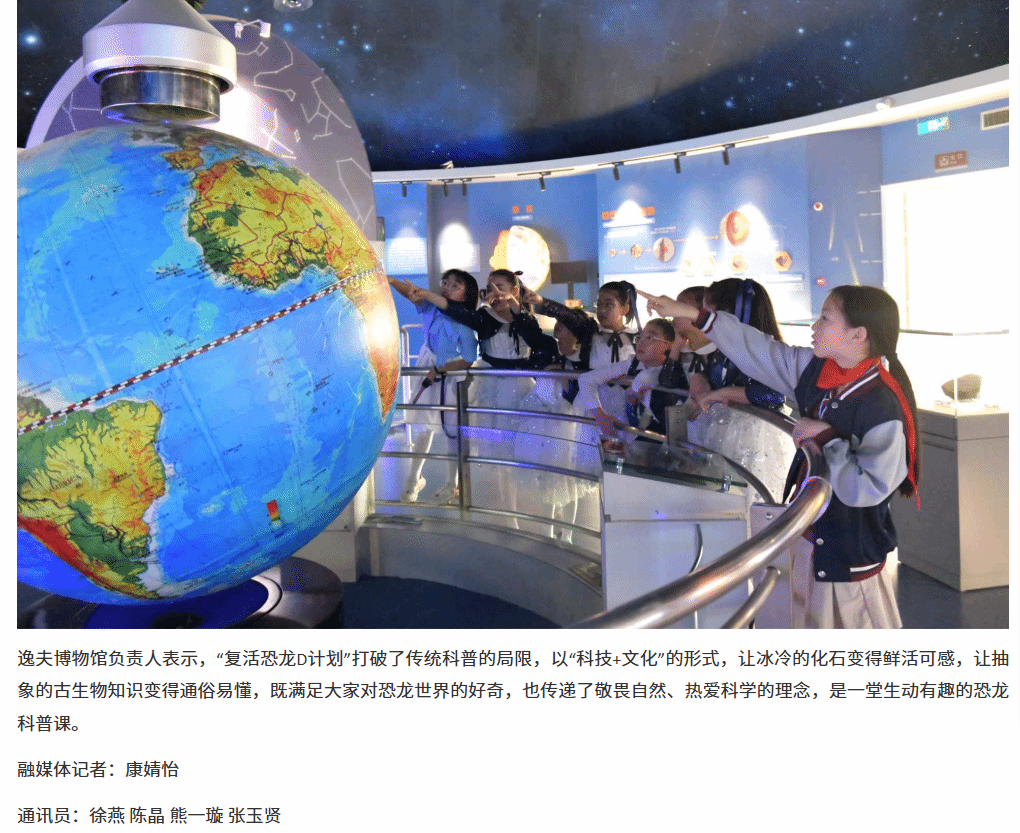 逸夫博物馆负责人表示,“复活恐龙D计划”打破了传统科普的局限,以“科技+文化”的形式,让冰冷的化石变得鲜活可感,让抽象的古生物知识变得通俗易懂,既满足大家对恐龙世界的好奇,也传递了敬畏自然、热爱科学的理念,是一堂生动有趣的恐龙科普课。