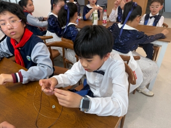 珍珠科普课堂更是惊喜不断!“沙子真的会变成珍珠吗?”带着小问号,孩子们认真听老师讲“蚌病成珠”的奇妙故事,了解珍珠是怎么一点点长大的。最激动人心的开蚌环节来啦!大家小心翼翼打开珍珠蚌,一颗颗圆润的珍珠露了出来,像拆盲盒一样刺激又快乐。清洗、抛光、串成项链和戒指,不少小朋友打算把这份来自大海的礼物送给爸爸妈妈,脸上满是自豪。