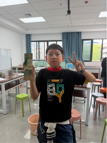 一走进矿物岩彩小课堂,孩子们就被来自大地深处的“魔法色彩”吸引住了。在科普老师的带领下,大家认识了孔雀石、蓝铜矿、雄黄、石青、云母这些神奇矿物,亲手研磨、搅拌、调色,把硬硬的石头变成了鲜艳又天然的颜料。握着画笔,大家认真画出属于自己的岩彩书签,每一笔都藏着对大自然的好奇。地大附小五(3)班的高奕阳同学开心地说:“原来石头也能画画!既好玩又学到好多知识,太有意思啦!”